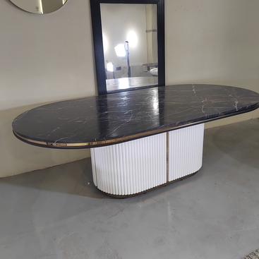 Большой обеденный  стол овальной формы. Форма овал может быть в нескольких вариантах.